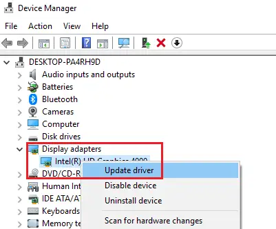 The Display driver is the backbone of this feature on Windows 10. You can either update the Graphics Driver or rollback or reinstall it. These actions can be performed from the Device Manager under the section of Display adapters. Also, you can try to update, rollback, or reinstall the Network drivers. They can be found under the section of Network Adapters.